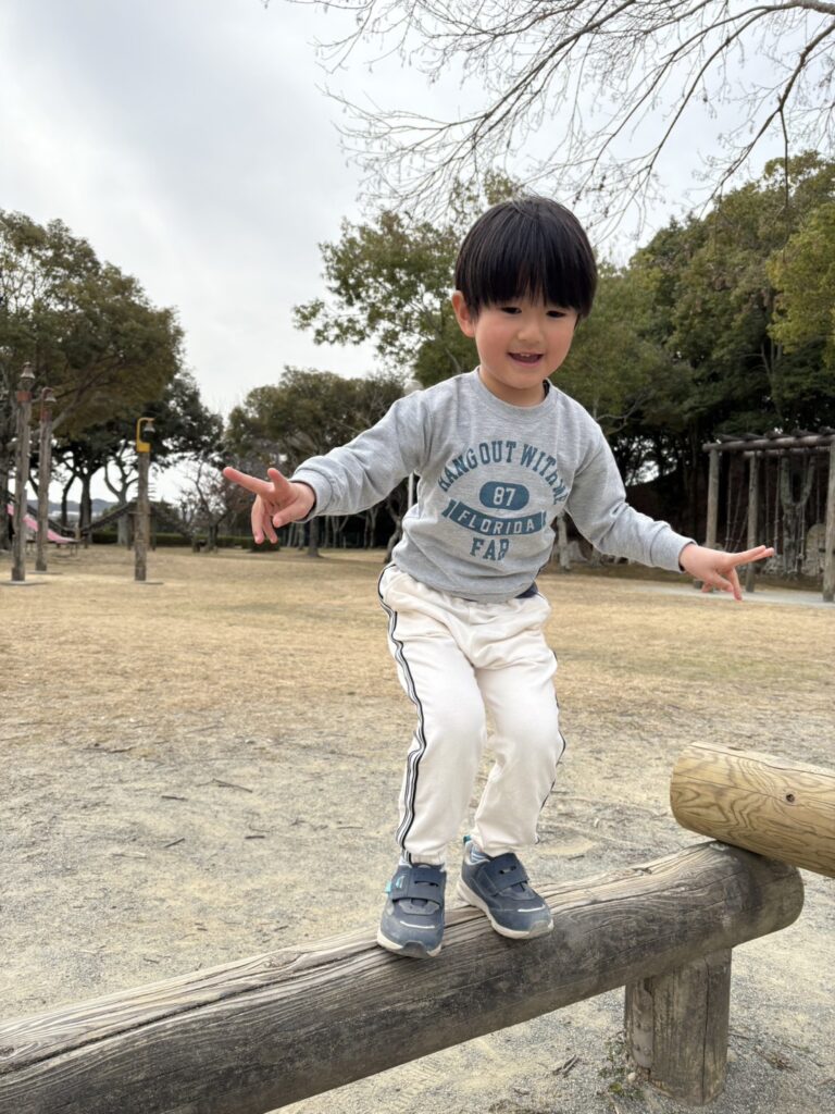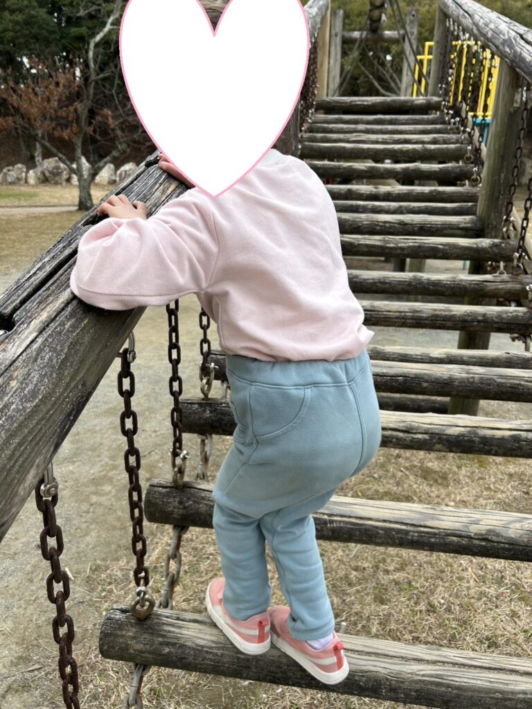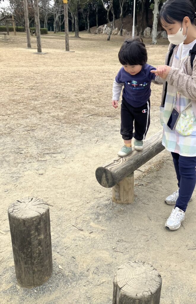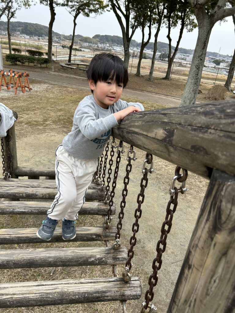 自由遊びの時間では大型遊具の揺れる丸太を上っていたお友達を見て「ぼくもやってみよう!」と後を追っていた子もいましたよ。
