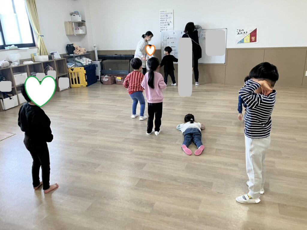 『だるまさんがころんだ』では、慎重に進む子や素早く進む子・・・掛け声に合わせて止まる際にはカッコいいポーズを決める子など様々な姿が見られましたよ👀