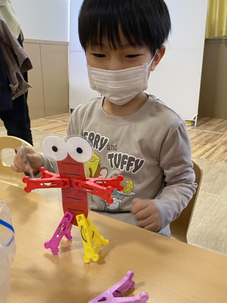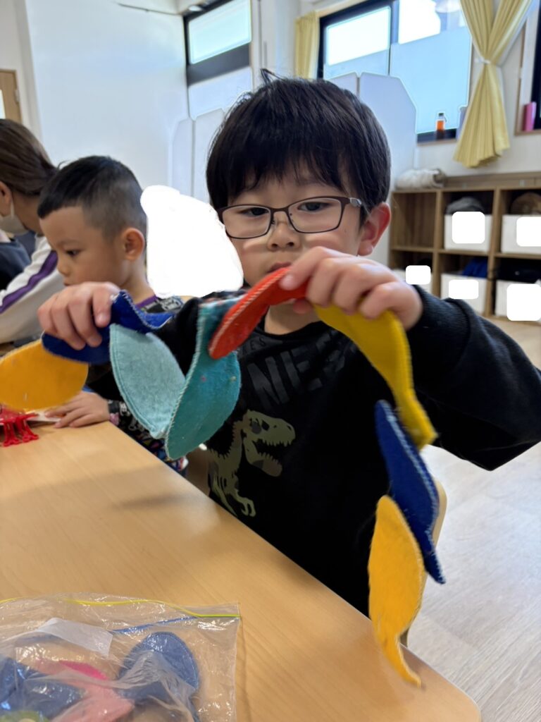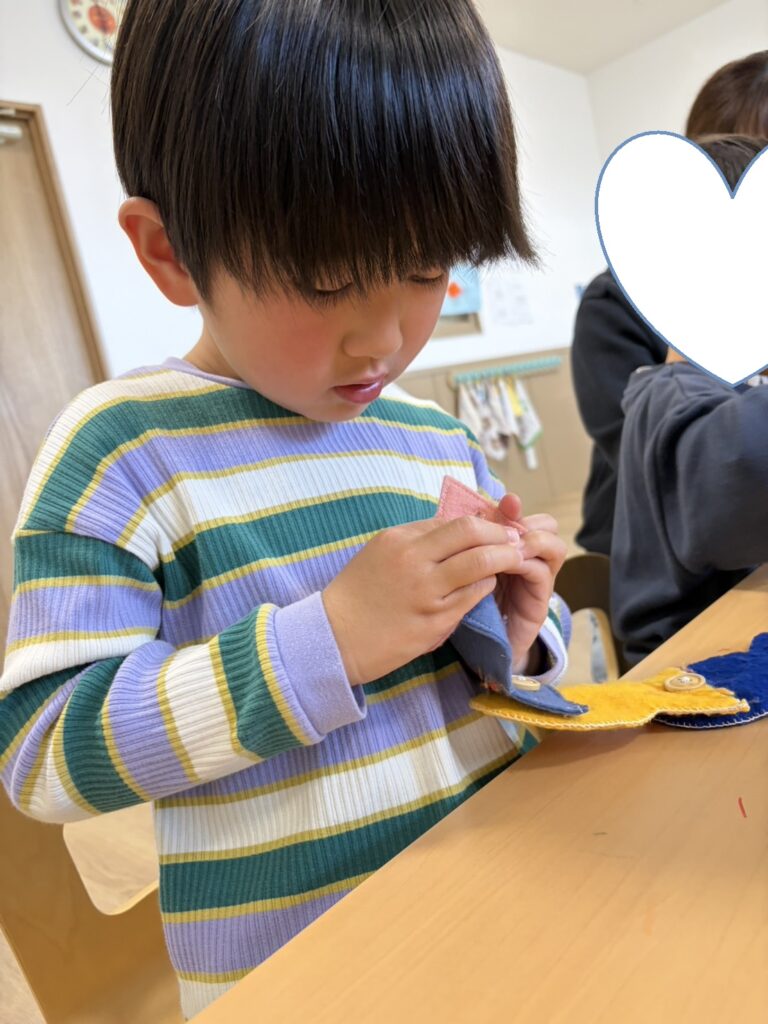 ほかにも洗濯ばさみやペグ、ボタンや棒さしなど集中して行う姿が見られました👀