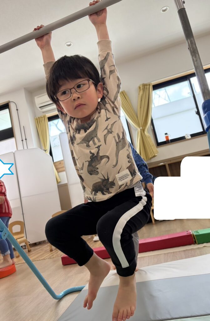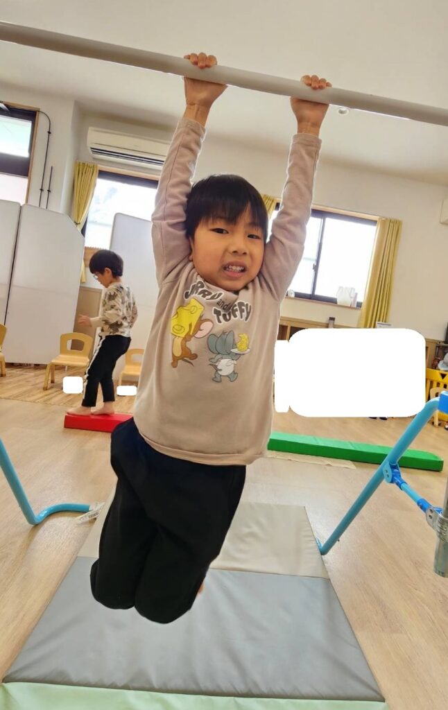 鉄棒では「何秒ぶら下がることができるかな!!」と記録に挑戦する利用児さんも😊