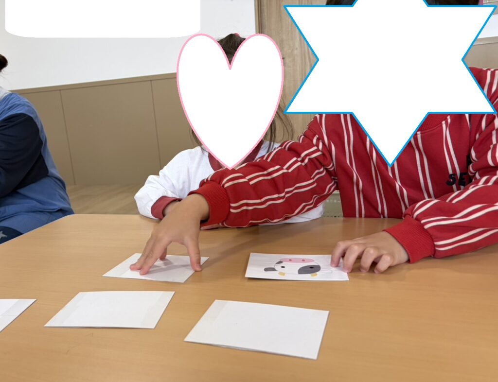 神経衰弱を行ったグループでは繰り返し行っているため覚えるコツを掴んできた利用児さん達☺