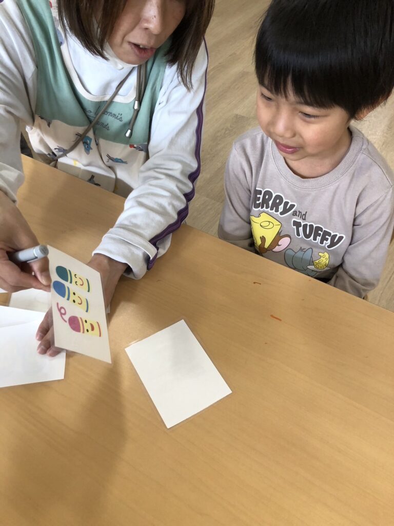 ★集団個別課題・・・プリント/積み木模倣/数字カード/生活カード/平仮名カード/手先など