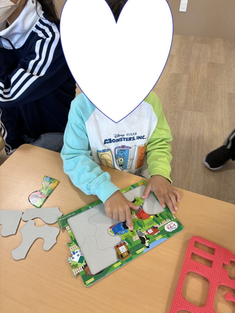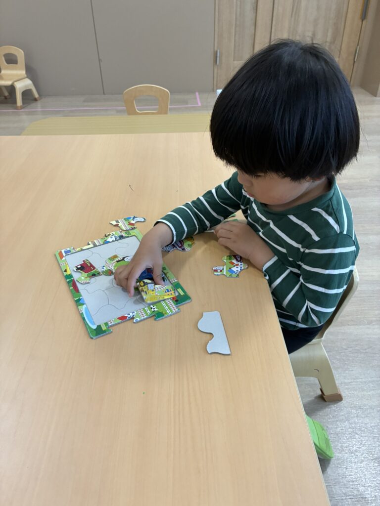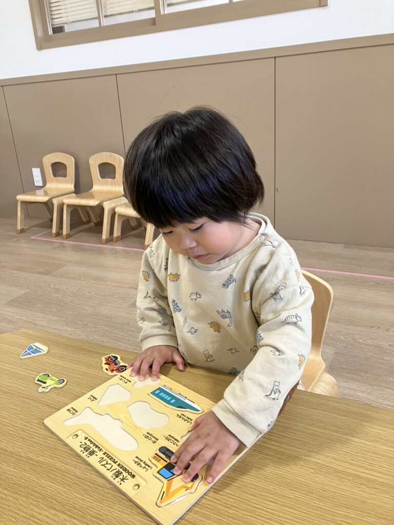 乗り物の型はめに興味を持った利用児さん🚗🏍️🚝