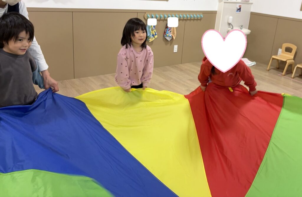 バルーンが下がってくるときには身体を縮めたり、手を伸ばして触ろうとしたりと、とてもニコニコで楽しそうな利用児さんでした🤗