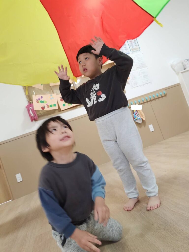 上下に動かすときには息がぴったり合うと、とても高くまでバルーンが上がり、キラキラしたした目で見上げていましたよ✨✨