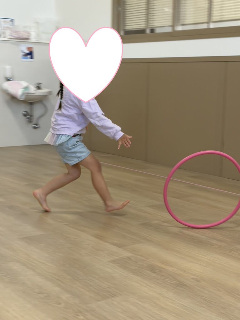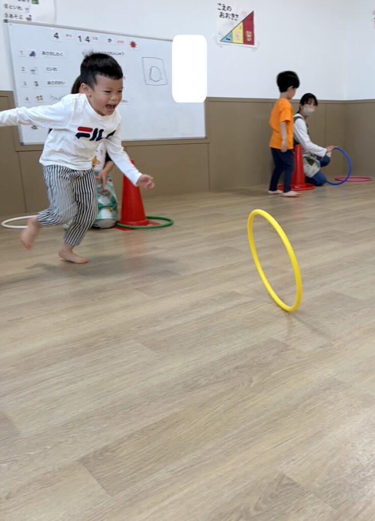 フープキャッチではフープが倒れる前にキャッチできると「やったーーー☺」っと喜ぶ様子が見られました👀