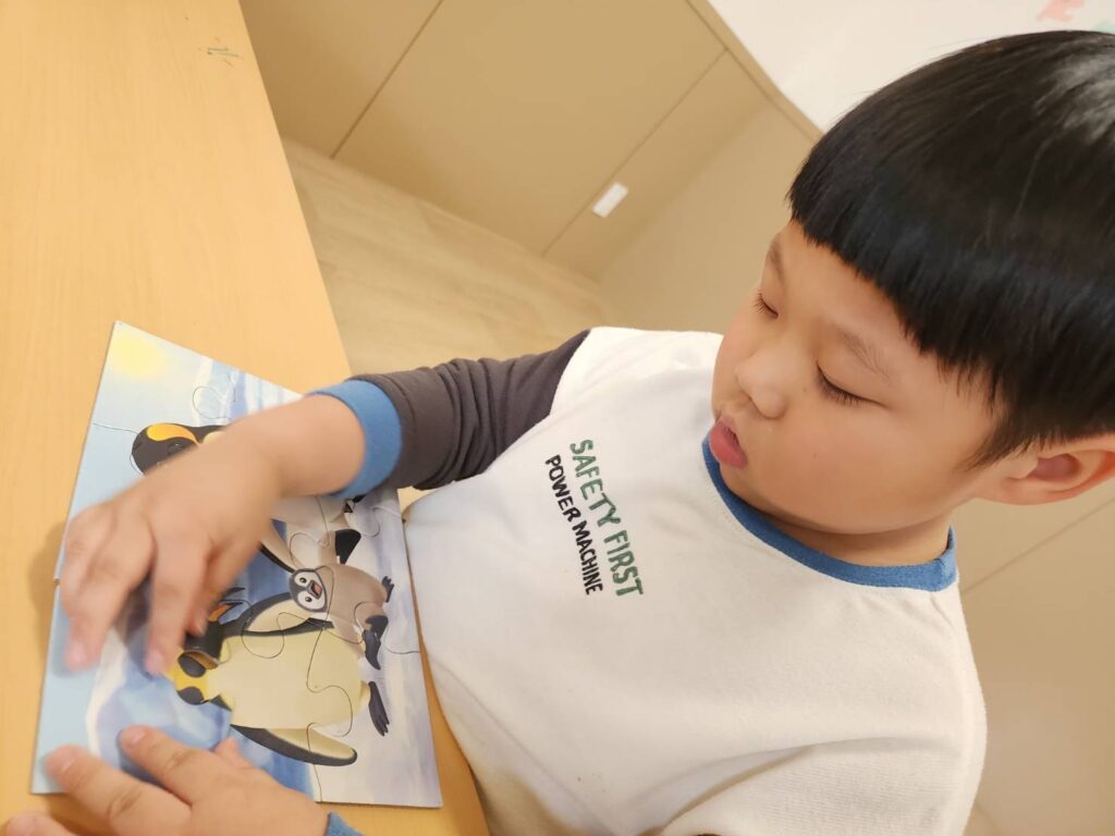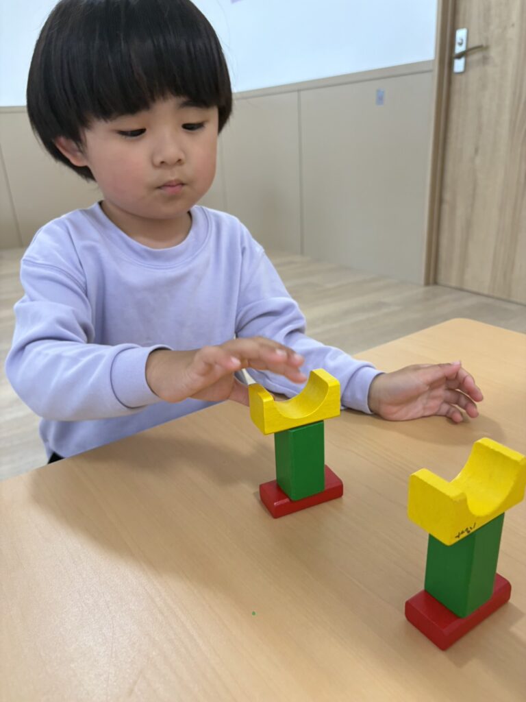 積み木模倣や間違い探しのプリントを行った子☺