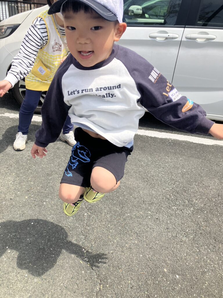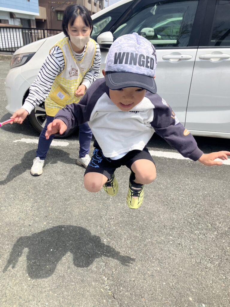 縄跳びジャンプでは、職員がまわす縄に合わせてリズムよく飛ぶ子も👏