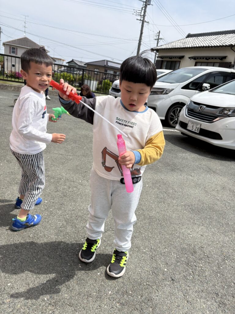 三輪車やシャボン玉、なわとびなどそれぞれ好きな遊びを楽しみました🎵